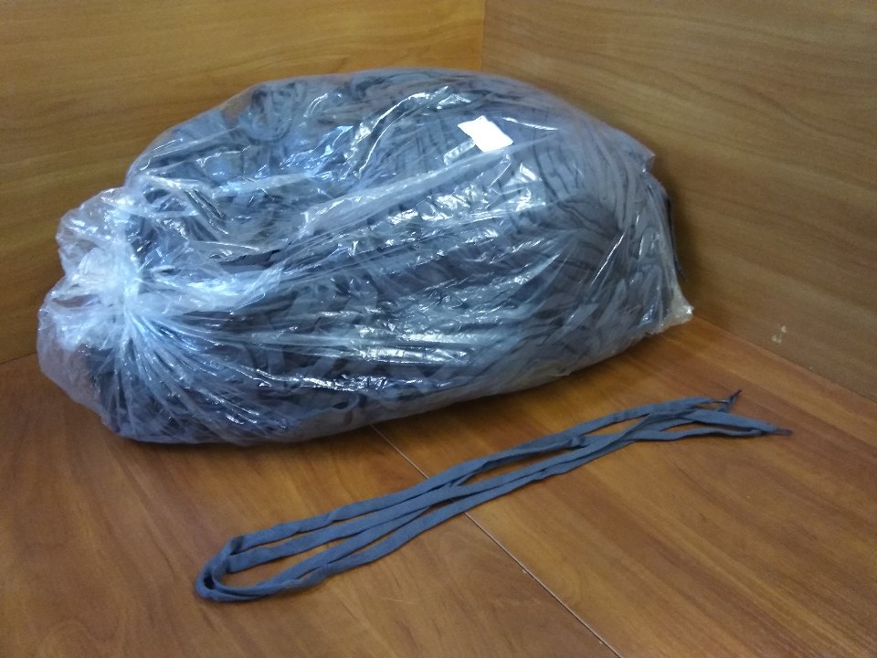Шнурки в асортименті у кількості 17442 шт. Будь-яке маркування на товарі відсутнє, вагою 50 кг, 56 кг, 45 кг. Разом 151 кг. Код УКТ ЗЕД 3919.