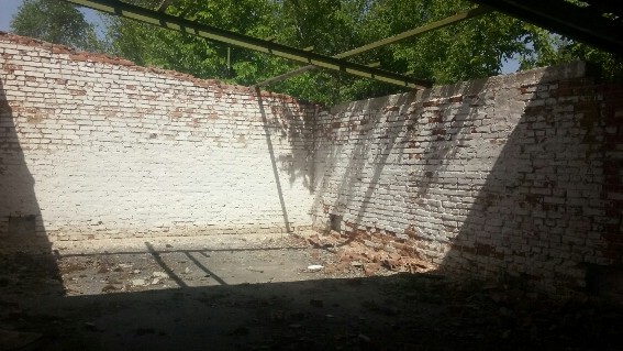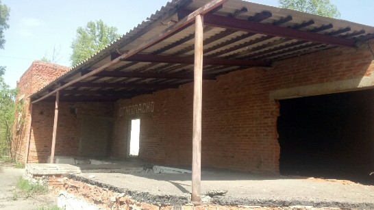 Фундамент - з/бетон, зовнішні стіни - цегла, перекриття - з/бетонні плити, покрівля - шифер, підлога - асфальт, вікна - дерево, внутрішнє опорядження - відсутнє. Інженерне обладнання - електро-, газопостачання (інформація про стан комунікацій відсутня).