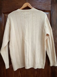 Джемпер жіночий, кремового кольору, рукав довгий, в'язка в товсту продольну смужку та візерунок "коса", розмір М, б/в.