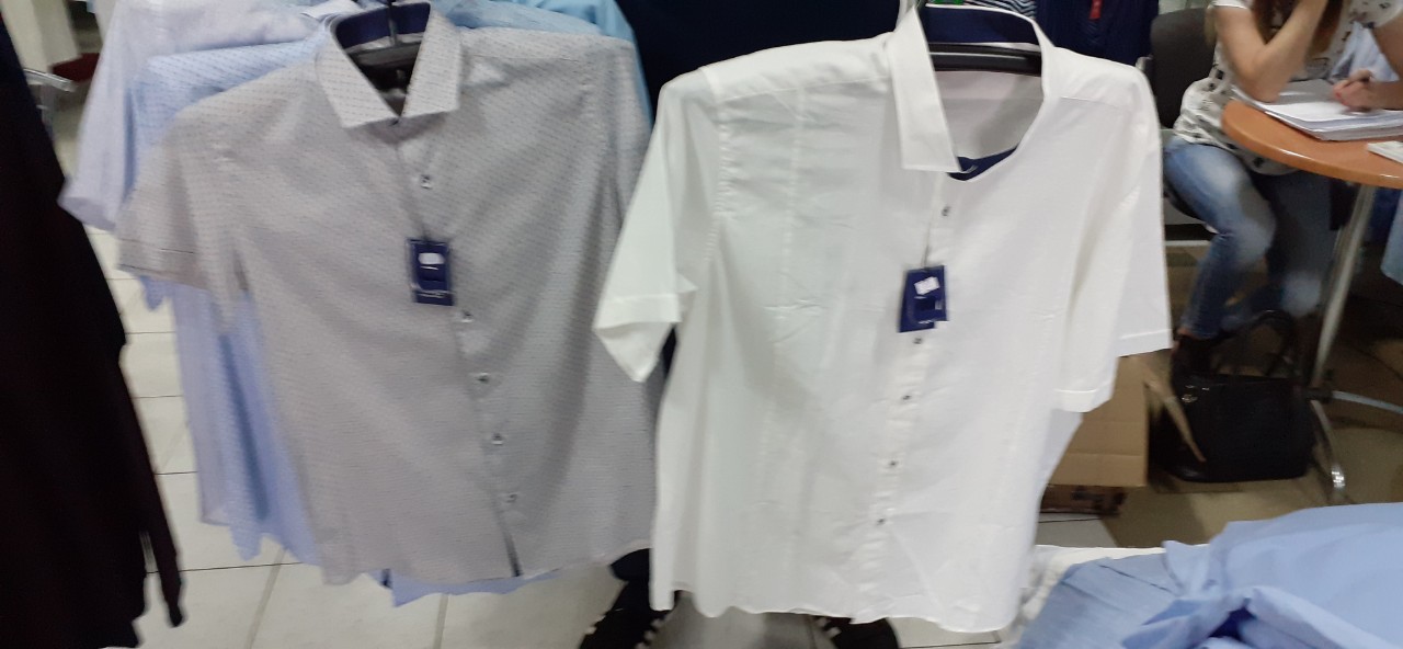 - Сорочка чоловіча в кольорах: білий, кремовий, сірий з візерунком, блакитний з візерунком, білий з візерунком, з коротким рукавом, фірма «WHITE» - 8 шт., розміри - 5ХL, 4ХL, М, 2ХL, 2ХL, L, 2ХL, 2ХL;