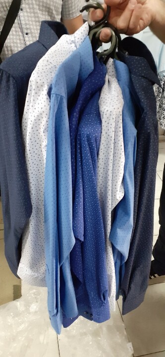 - Сорочка чоловіча в кольорах: блакитний, фіолетовий, сірий, темно – синій, з довгим рукавом, фірма «AMATO» - 8 шт., розміри - ХХL, L, L, М, М, М, ХL, L;